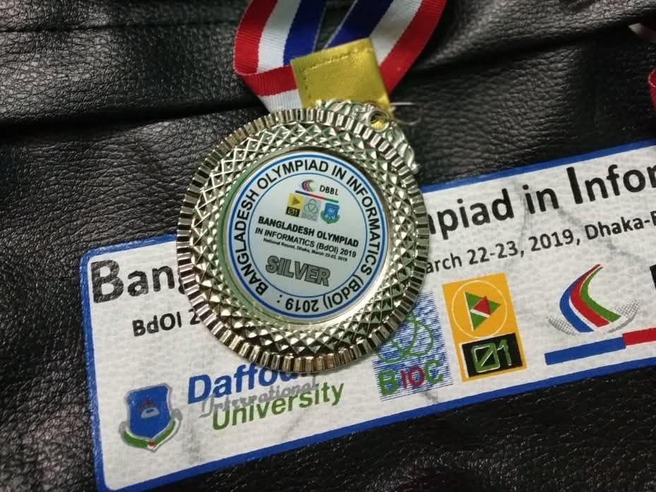 Silver medal, Bangladesh Olympiad in Informatics (BdOI), National Round 2019 — Dhaka, 22–23 March 2019