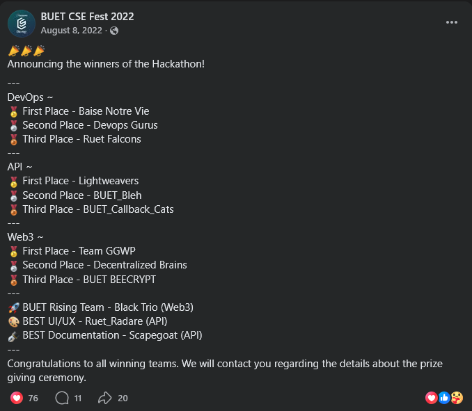 Third place (API), BUET CSE Fest Hackathon 2022 — team BUET_Callback_Cats (AI-based voice assistant)