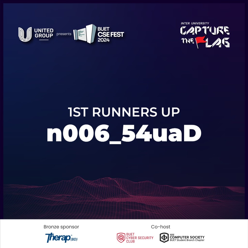 1st runner-up (Inter University Capture The Flag), BUET CSE Fest 2024 CTF — team Oscillating/Pandas
